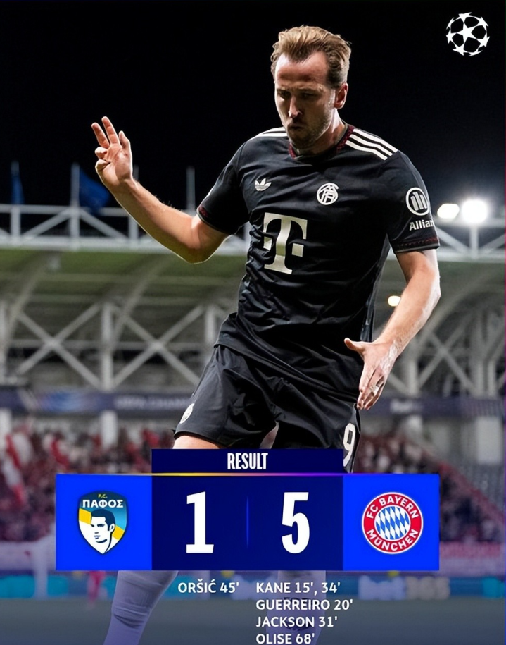 在这样一场实力差距悬殊的比赛中,拜仁无疑又是通过不到半场的时间所锁定胜利且结束悬念、而到了下半场也只是走过场的方式,拿到了最终的胜利--凭借凯恩的梅开二度和格雷罗,雅克松以及奥丽塞的进球,南大王客场5-1轻取帕福斯拿到两连胜。